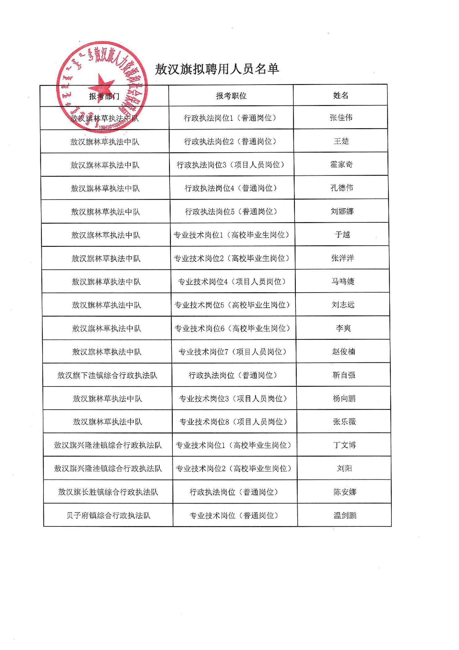 关于对2025年度内蒙古自治区林草执法人员专场招收敖汉旗岗位拟聘用人员进行公示的公告
