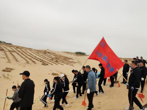 为全面落实习近平总书记交给内蒙古自治区的“五大任务”,响应赤峰市“两大沙地”歼灭战动员大会的号召,9月16日,在旗委、旗政府的统一安排下,旗人社系统党委带领全系统70多名党员干部,闻令而动、听令而行,在系统党委书记、局党组书记王晓钰同志带领下,积极参与科尔沁沙地防沙治沙大会战,建沙障、构网格、锁黄沙,构筑起一道道天然屏障。