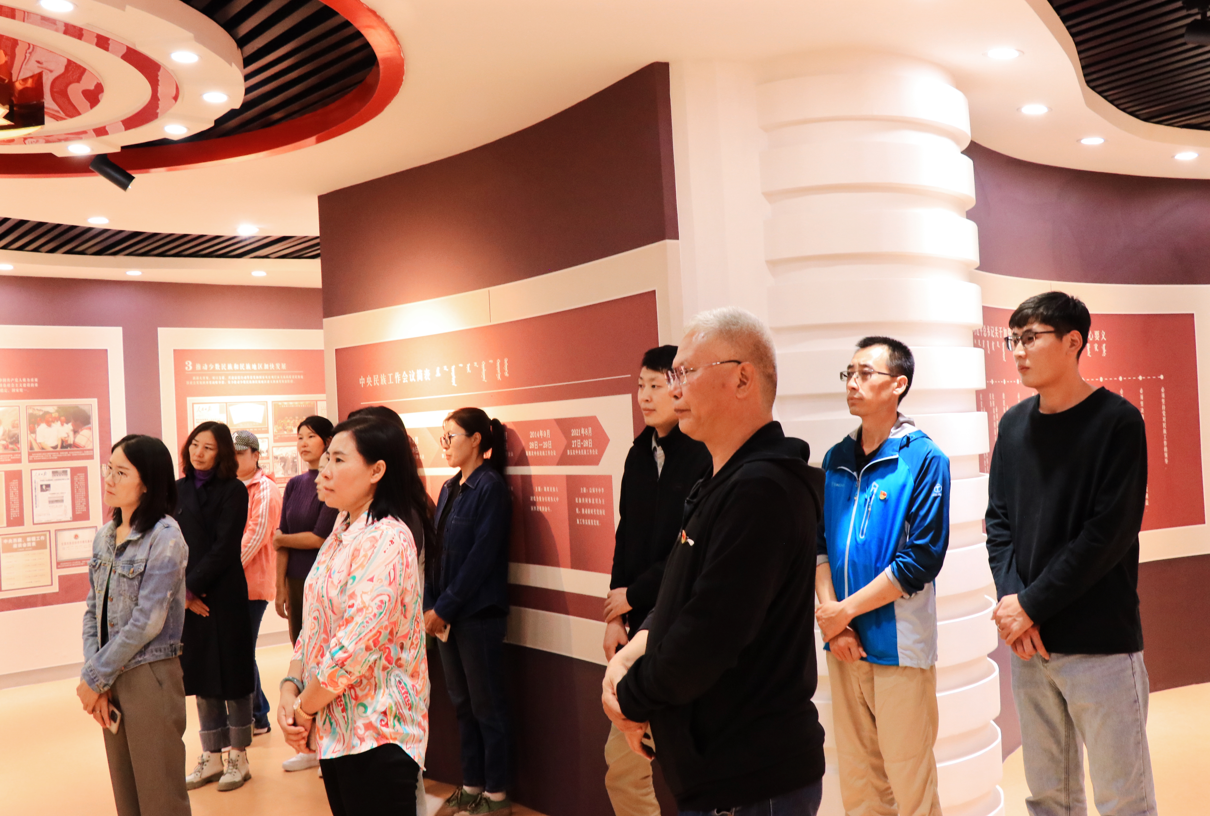 结合第40个全区民族团结进步活动月,组织党员干部赴巴彦琥硕镇“感党恩 听党话 跟党走”民族团结进步教育基地、查干沐伦苏木固伦淑慧公主陵、沙巴尔台巴林王府以及格斯尔庙,开展民族团结进步宣传教育活动,聆听民族团结进步故事,追寻各民族和睦相处、和衷共济、和谐发展的一段段历史佳话,党员干部纷纷被巴林右旗深厚的文化底韵和优秀的传统文化所吸引,更加坚定了文化自觉和文化自信。深入嘎查村、社区宣传党的民族理论和民族政策,发放宣传单400余份,覆盖居民群众300多人。组织党员干部观看爱国影片《我和我的祖国》,开展党的民族团结进步知识测试,进一步深化党员干部爱国主义情怀,铸牢中华民族共同体意识,推动“五个认同”入脑入心,引导党员干部共同团结奋斗、共同繁荣发展,听党话、感党恩、跟党走。