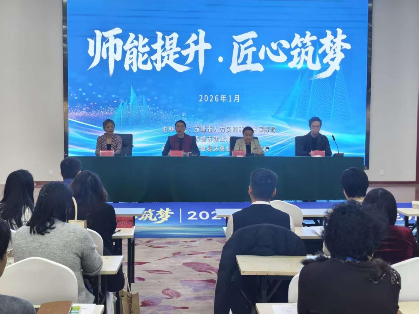 为深入贯彻职业技能提升行动战略部署,全面强化赤峰市职业技能培训师资队伍的专业化建设,着力提升培训教学质量与实操赋能实效,2026年1月5日至6日,由市人力资源和社会保障局、市就业服务中心主办,赤峰易达职业技术培训学校承办的“师能提升 匠心筑梦”职业技能培训师资能力提升服务活动圆满落幕。近百名来自全市各职业技能培训机构的骨干师资齐聚一堂,在为期两天的系统性学习与深度交流中充电蓄能,为赤峰市职业技能培训事业的高质量发展注入了强劲动力。