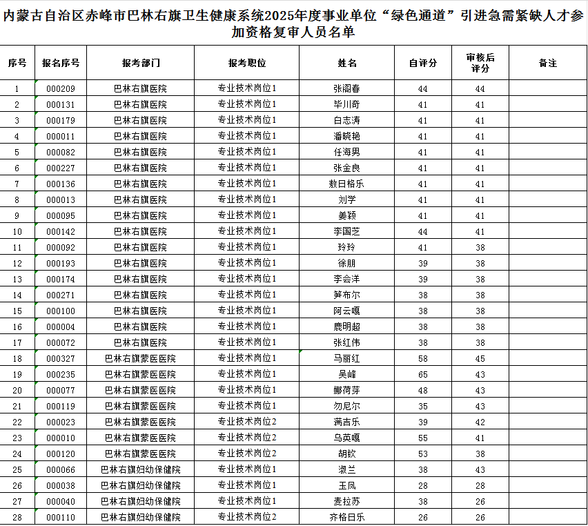 巴林右旗卫生健康系统2025年度事业单位“绿色通道”引进急需紧缺人才资格复审及面试工作公告