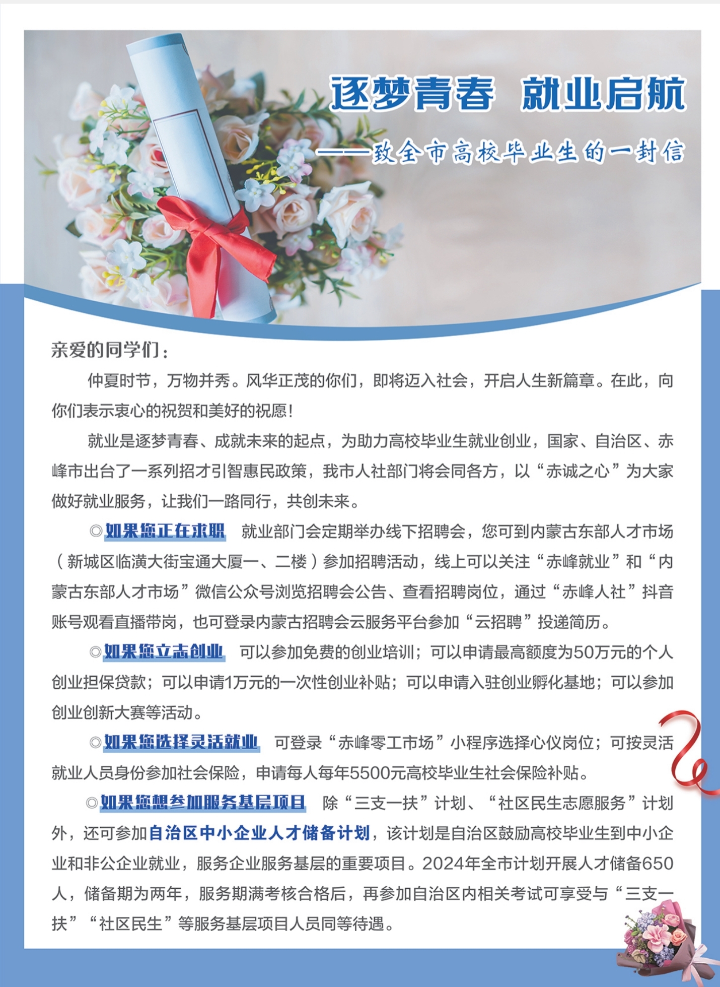 【逐梦青春 就业启航】致全市高校毕业生的一封信