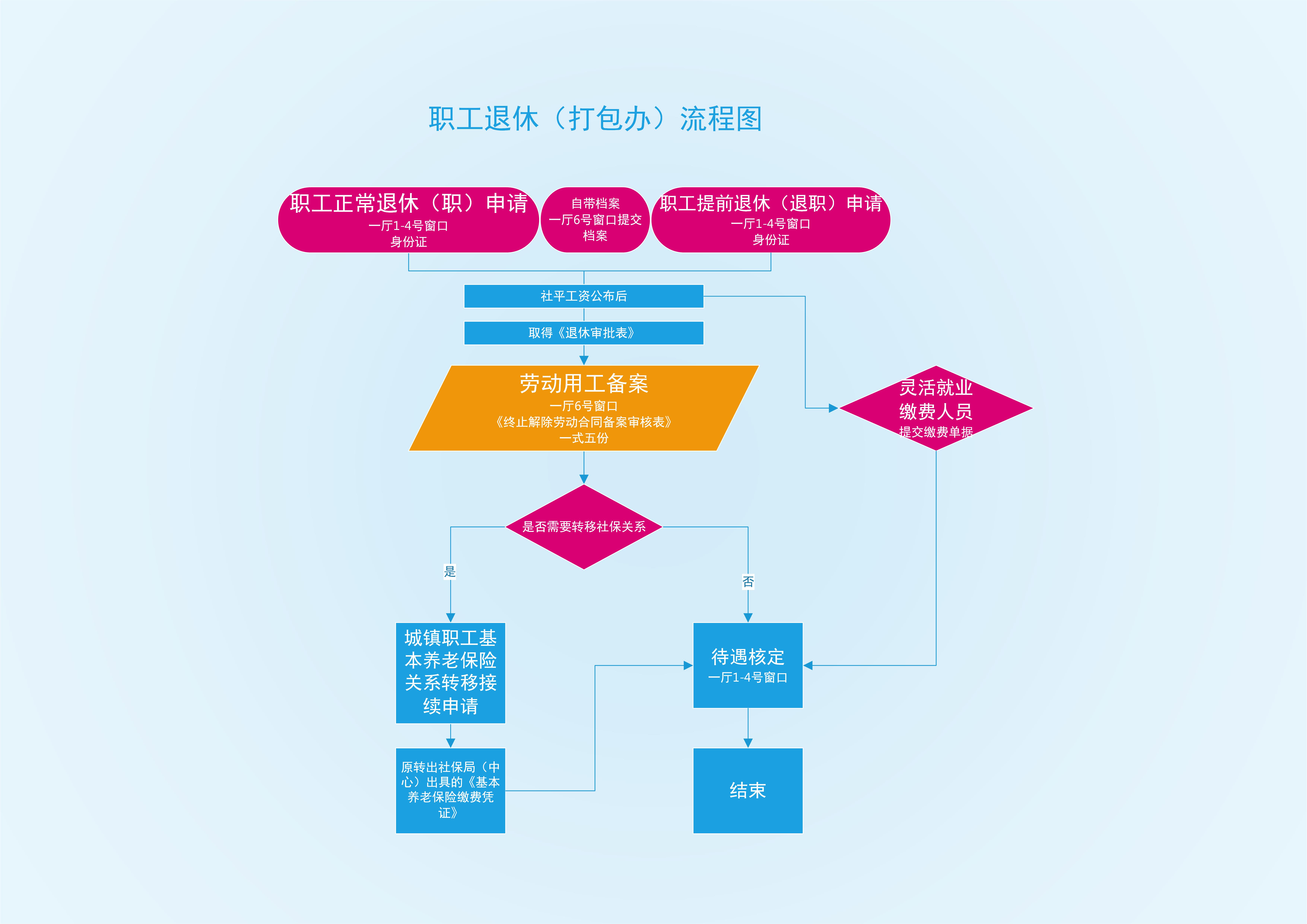 退休申请 | 职工正常退休(职)申请 | 居民身份证 | 居民居民身份证 | 社平工资确定后,30个工作日 | 一厅1-4号窗口 |