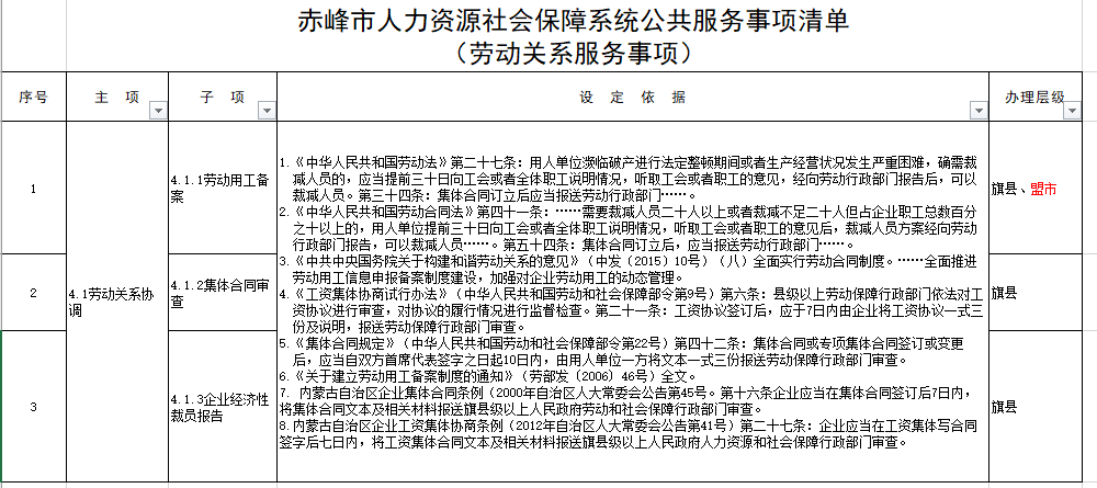 赤峰市人力资源社会保障系统公共服务事项清单(劳动关系服务事项)