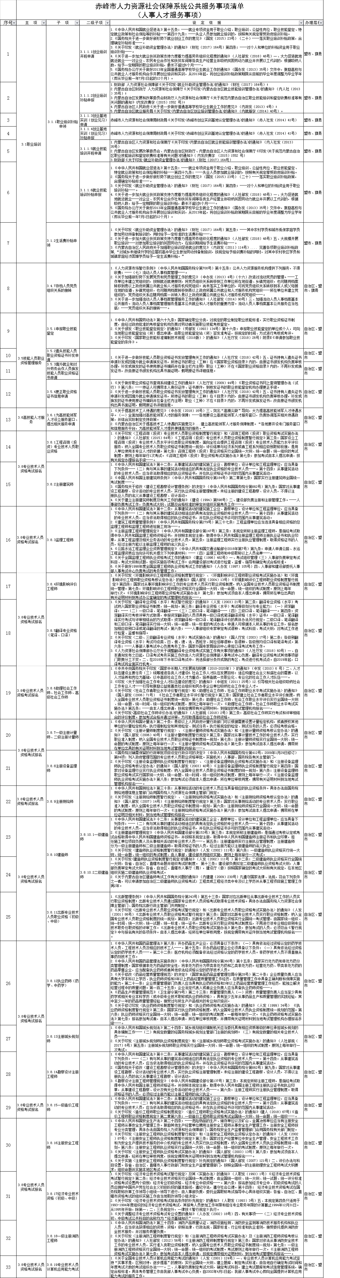 赤峰市人力资源社会保障系统公共服务事项清单(人事人才服务事项)