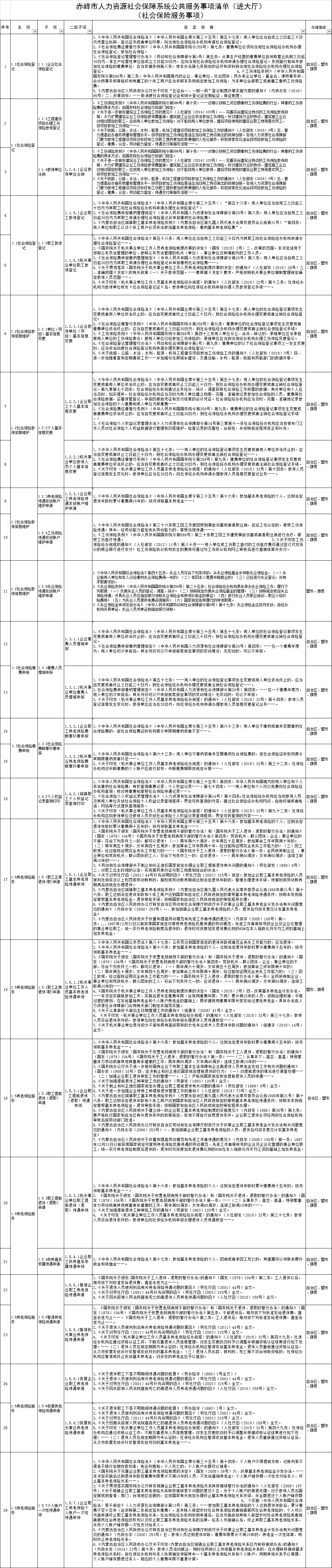 赤峰市人力资源社会保障系统公共服务事项清单(社会保险服务事项)