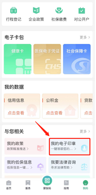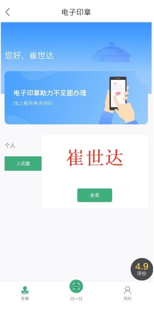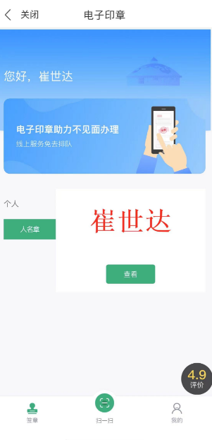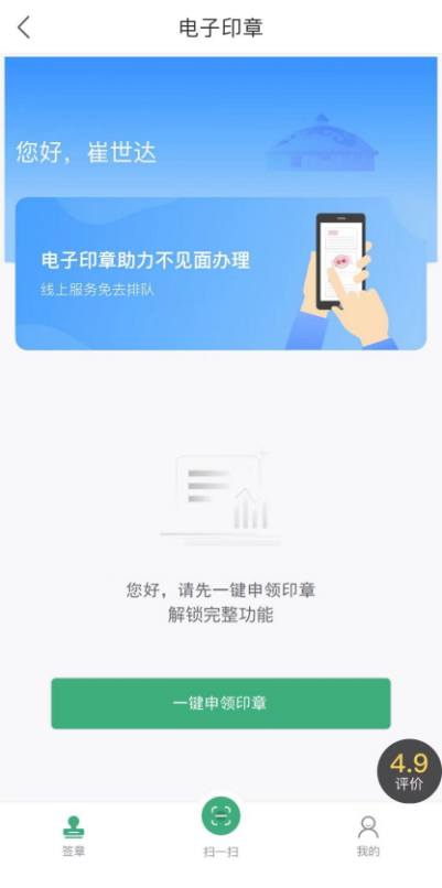 个人“一键申领印章”功能