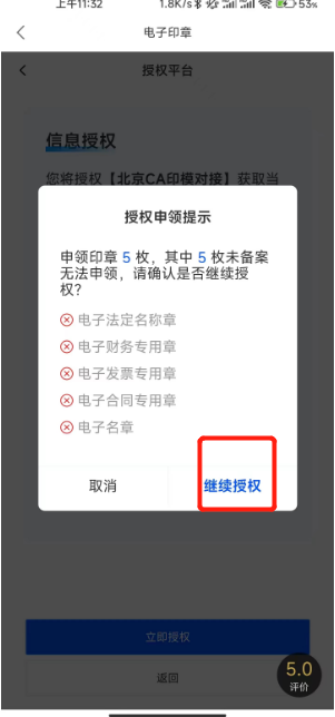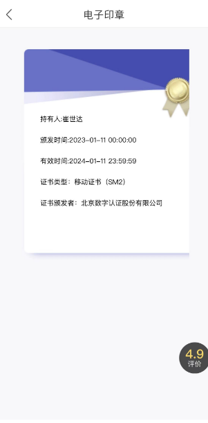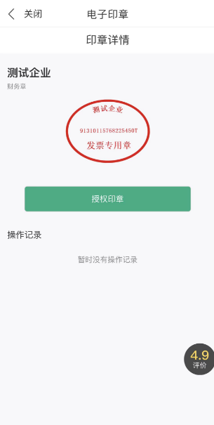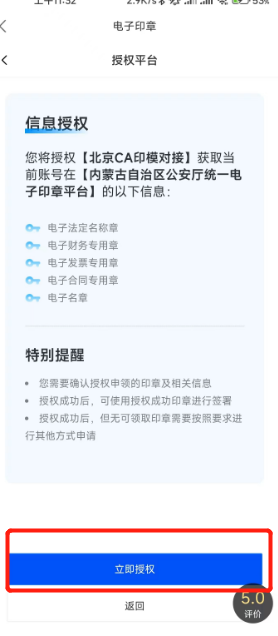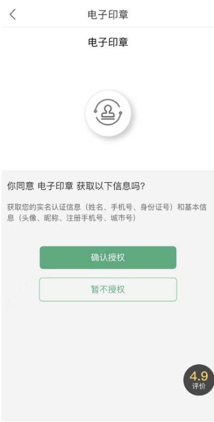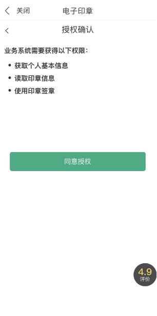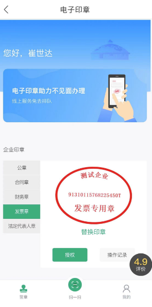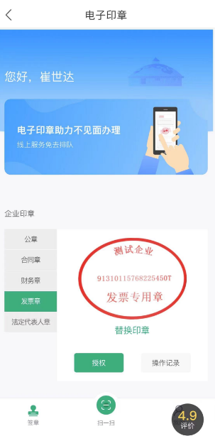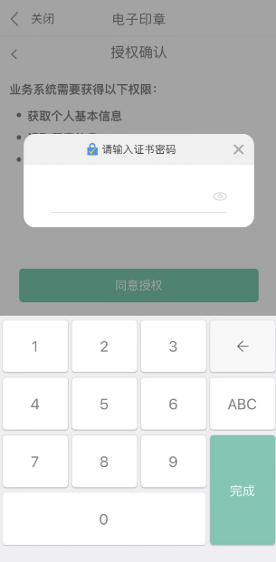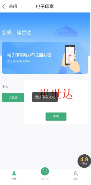 完成实人核验与电子印章应用授权后,进入电子印章应用: