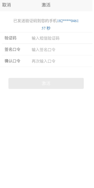 点击“口令重置”,输入当前登录蒙速办移动端手机号码获取的短信验证码、设置数字证书保护口令(用户设置,后续扫码签章等过程会校验证书保护口令),点击“激活”功能完成数字证书口令重置: