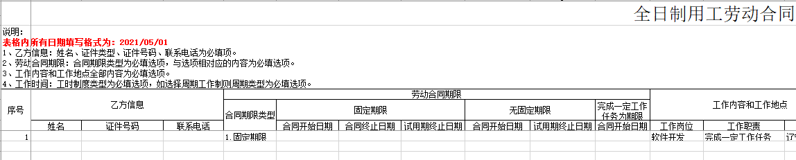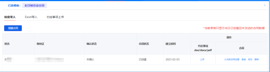系统提供逐个录入劳动合同、批量导入劳动合同两种创建方式。