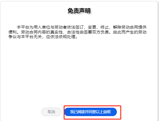 第二步:选定合同模板后,点击【我已阅读并同意以上说明】,同意“电子劳动合同服务告知书”。