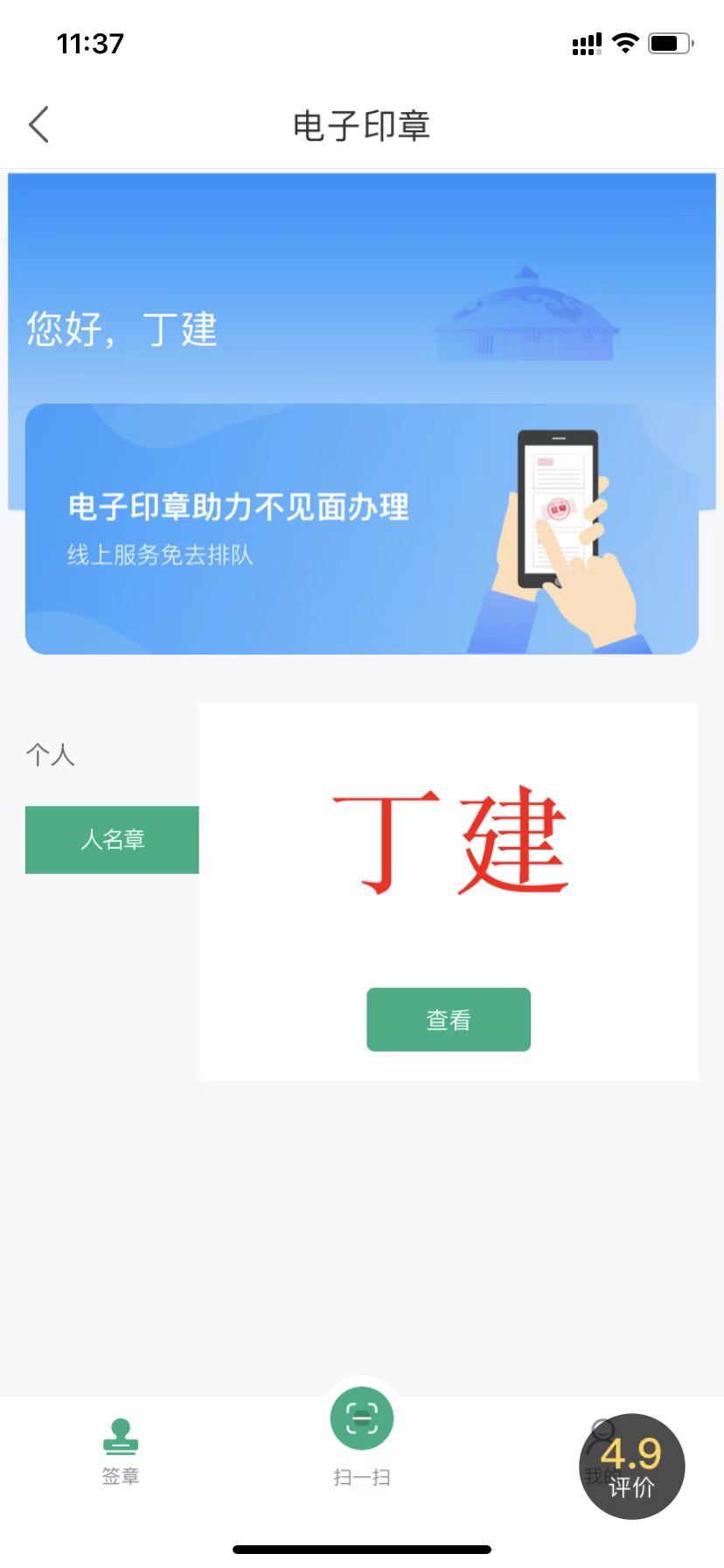 第二步:盖章,操作路径“蒙速办”app-搜索【电子印章】-【扫一扫】,扫描屏幕前的二维码。