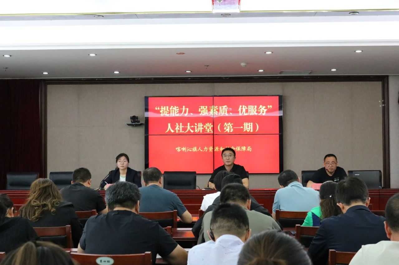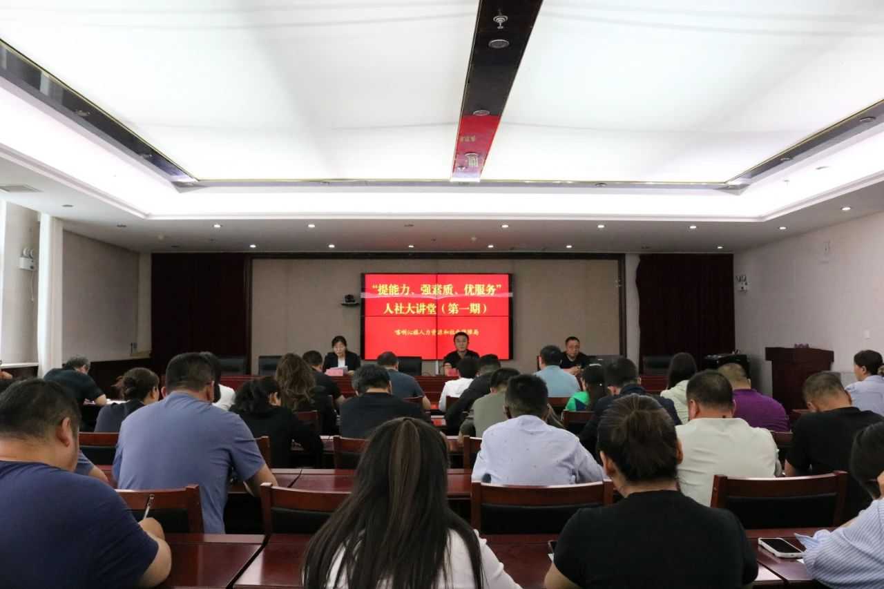 为扎实推动学习型机关建设,引导全体干部转作风、提素质、强本领,在学习中锻炼工作本领,在交流巩固业务知识,旗人社局决定举办“提能力、强素质、优服务”人社大讲堂活动。5月31日下午,第一期人社大讲堂开班。人社系统领导班子成员及全体干部参加大讲堂。