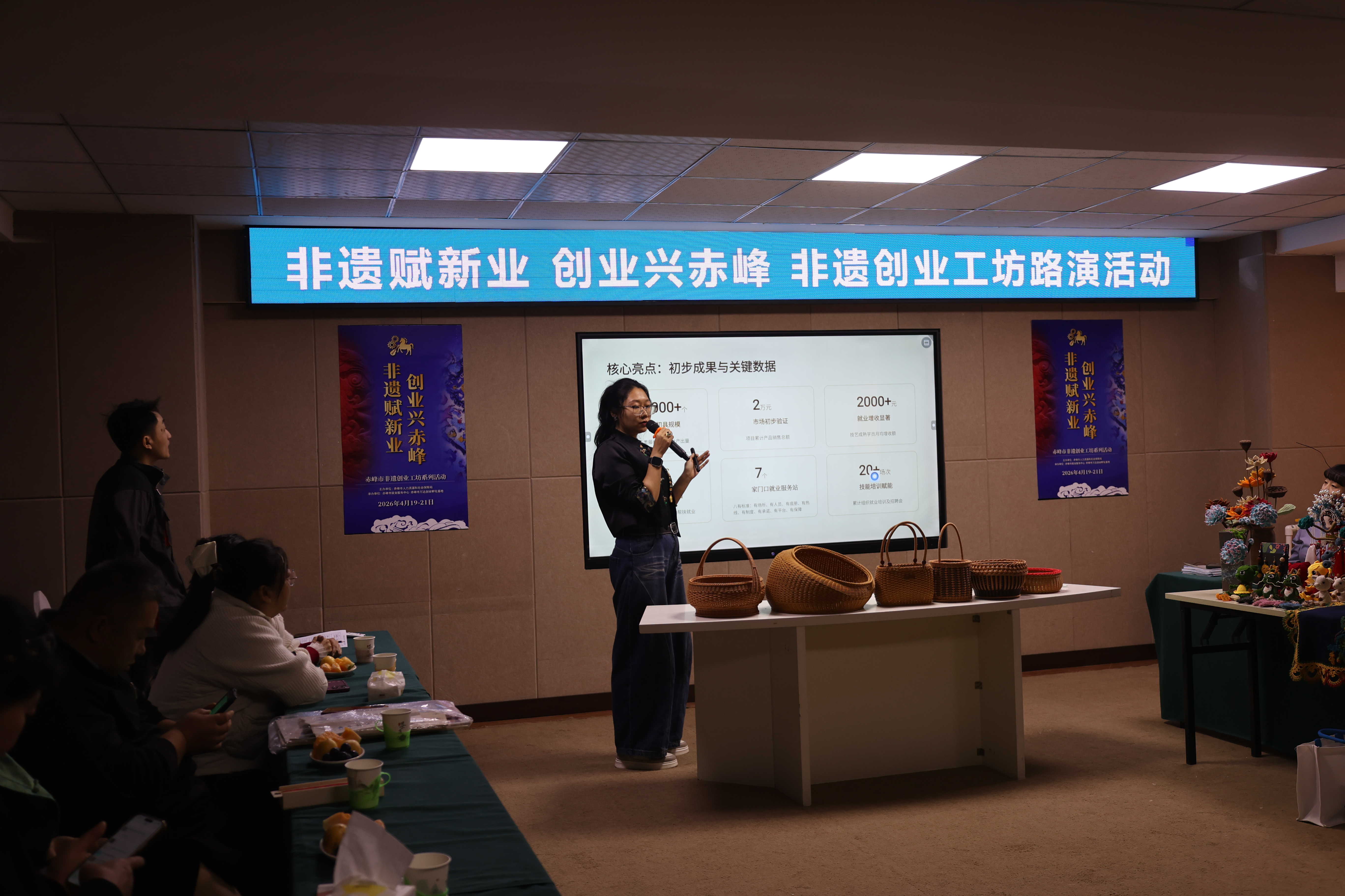 此次系列活动分阶段有序推进,各环节亮点纷呈、成效显著,形成了“培训筑基、交流赋能、路演提质”的完整闭环。4月19日,非遗创业培训率先开展,资深创业导师围绕非遗发展核心瓶颈,直击当下多数非遗从业者“重技艺传承、轻市场需求,重情怀坚守、轻价值转化”的共性问题,深刻阐释市场化思维对非遗长效发展的关键意义,引导参训传承人、创业带头人转变传统理念,学会从消费者视角审视产品、对接需求,为非遗项目市场化转型、实现创业增收筑牢坚实的能力基础。4月20日,非遗创业技艺交流会顺利举办,赤峰市非物质文化遗产保护中心相关负责人现场解读非遗保护相关政策法规,各非遗项目负责人集中展示精品力作,分享创作理念与市场运营现状,专家导师现场把脉问诊、精准支招,有效搭建起传承人与市场资源、行业专家的对接桥梁。4月21日,作为系列活动核心环节的路演展示如期举行,活动特邀市非遗服务中心专家、资深创业导师、优秀企业家组成专业评审组,筛选出10个兼具文化价值与市场潜力的优质非遗项目,未来将聚焦优质项目,强化免费孵化赋能、资源精准对接与产业深度引导。